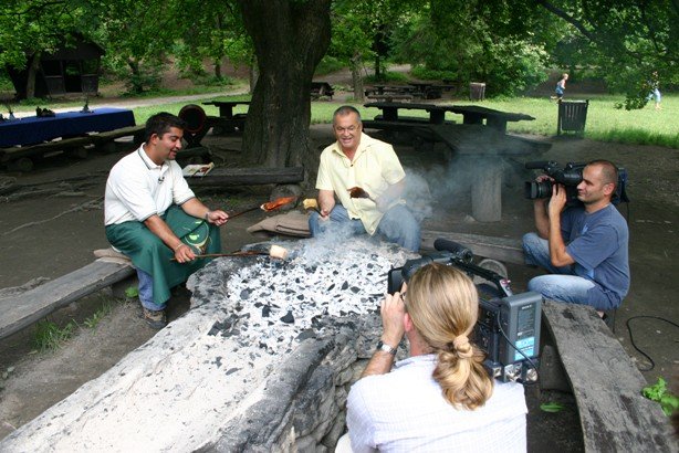 Azért mi Magyarok azért ki tudjuk találni, hogy mitől jó a parázson, nyárson sütött kicsit sovány hal. Persze a másik botra húzott füstölt szalonna kicsöpögő forró zsírjával folyamatosan és lassan sütjük.