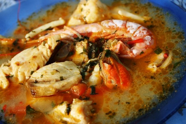Mediterrán halleves, enyhén savanykás, zöld fűszerekkel, finom tenger gyümölcseivel isteni!