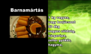 Az ételajánlat a Hűvösvölgyi Vigadóban a Gasztró Színház előadásakor.