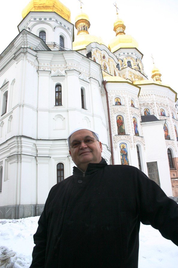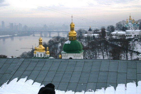 Reggeli hideg ködfátyolba öltözött a Kijevi kolostor együttes. Nagyon érdekes volt, hogy a nagytemplom erre a célra kiépített fűtött előterében, emberek melegedtek, beszélgettek, társasági életet éltek. Itt vált valóssá számomra az isten háza kifejezés.
