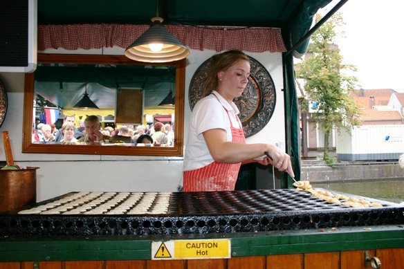 Érdekes látni, hogy a palacsinta amikor meghódította Amerikát kicsit megváltozott. Megvastagodott, megnagyobbodott. Most viszont ismét visszatért, minire zsugorodva. Az alaptészta receptje itt kis fánkocskák formájában itt sül az erre kiképzett speciális sütőben. Még finom is, szívesen látnám itthon is!