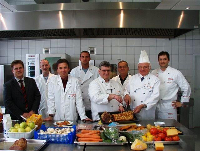 Munkatársaimmal több napot vendégeskedtünk a Rational-nál . Egy ilyen nagy tudású berendezés kezelése komoly szakértelemet igényel, ezért a lehetséges vevőket vendégül látják a cég Landsberg am lech-i gyárában. Mi is így kerültünk ide, megnézhettük hogyan készül, de legfőképpen a tréning konyhájukban elsajátíthattuk gyakorlatban a kezelését is. Ebben a gépben szinte minden ételt el lehet készíteni, de nekem a legnagyobb attrakció a bőrös karaj elkészítésének bemutatása volt. Még ilyen szinte chips szerű sertésbőrt idáig nem ettem. Szinte mintha pattogatott kukorica lett volna annyira kinyílt. Nem véletlenül ez fogyott leghamarabb el!