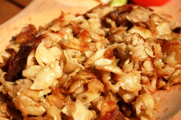 Akkor jó ha a megfőtt krumpli és tészta a szalonna zsírján így megpirul. ![]()