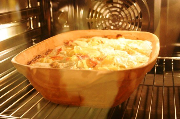 Étolajjal kikenjük a vastag falú, vagy teflon bevonatú edény alját, majd beledobjuk az apró kockára vágott hagymát. Sózzuk, és fedő alatt lassú tűzön megdinszteljük. A dinsztelt hagymára a tűzről levéve ízlés szerint pirospaprikát hintünk, majd hozzáadjuk az apróra vágott paprikát, paradicsomot, és lassú tűzön addig pároljuk, amíg a paprika megpuhul. Ekkor beletesszük az apró kockára vágott marhahúst, őrölt köménnyel fűszerezzük az ételt, majd a húst majdnem készre pároljuk. Ekkor adjuk hozzá a zöldbabot és fedő alatt az egész ételt puhára főzzük. Amikor a hozzávalók megpuhultak, akkor a liszttel lehintjük, hozzáadjuk a tejfölt és vízzel főzelék sűrűségűre engedjük fel. Felforraljuk és tálaljuk.